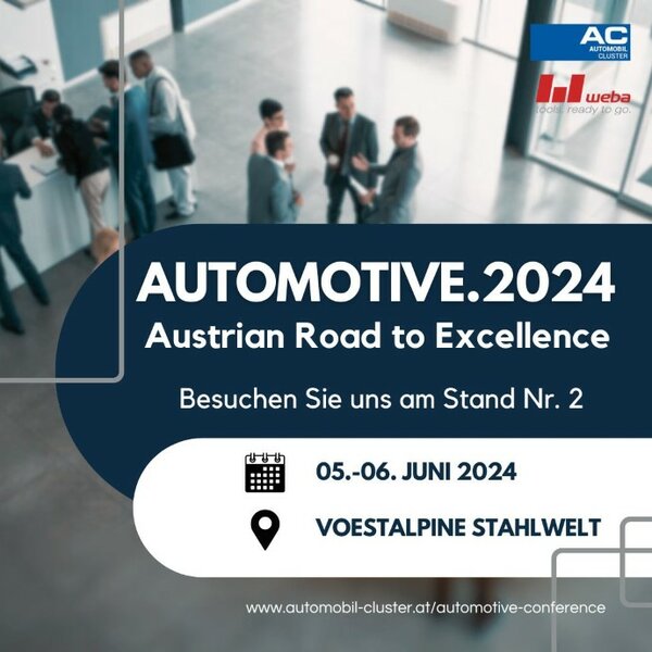 Jetzt vormerken: Automotive.2024 Merken Sie sich den Termin vor und seien Sie dabei, wenn die internationale Automobilindustrie in Linz zusammenkommt. Die „Automotive.2024 - Austrian Road to Excellence“ ist eine unvergleichliche Gelegenheit, um sich über die neuesten Trends und Technologien zu informieren und wertvolle Kontakte zu knüpfen. Wir freuen uns darauf, Sie an Stand Nr. 2 begrüßen zu dürfen und gemeinsam die Zukunft der Automobilindustrie zu gestalten. Bis bald in der voestalpine Stahlwelt!
